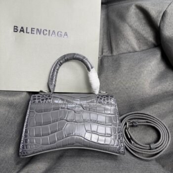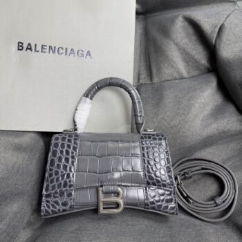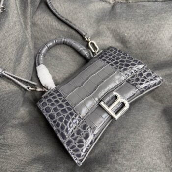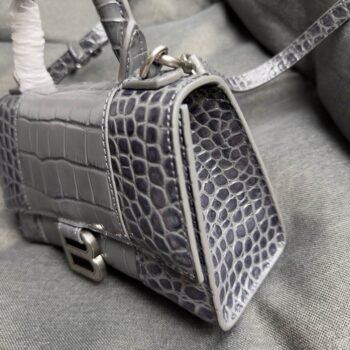 1 review for Balenciaga Crocodile Embossed Hourglass Top Handle handbag gray