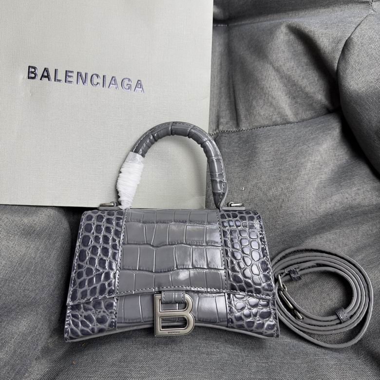 Balenciaga Crocodile Embossed Hourglass Top Handle handbag gray