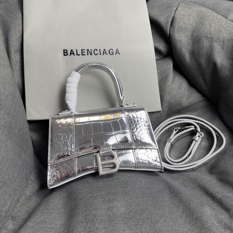 Balenciaga Crocodile Embossed Hourglass Top Handle handbag Silver
