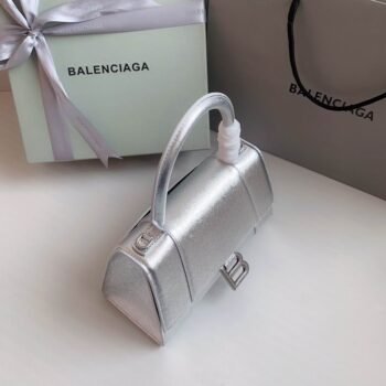 Balenciaga Hourglass Cow Leather Hourglass Bag, Handbag, Crossbody Bag Silver