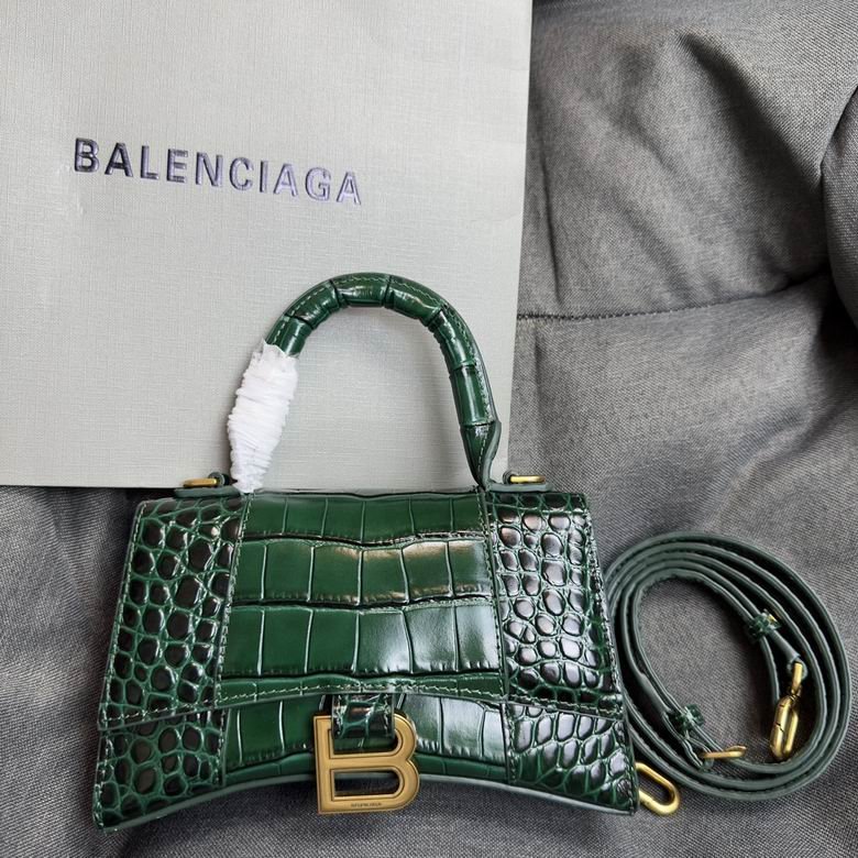 Balenciaga Crocodile Embossed Hourglass Top Handle handbag green