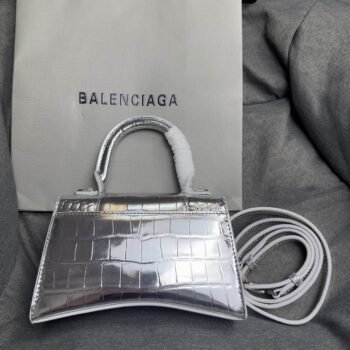 Balenciaga Crocodile Embossed Hourglass Top Handle handbag Silver