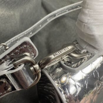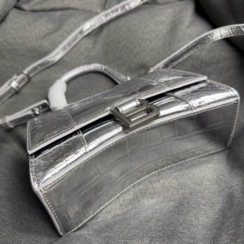 4 reviews for Balenciaga Crocodile Embossed Hourglass Top Handle handbag Silver
